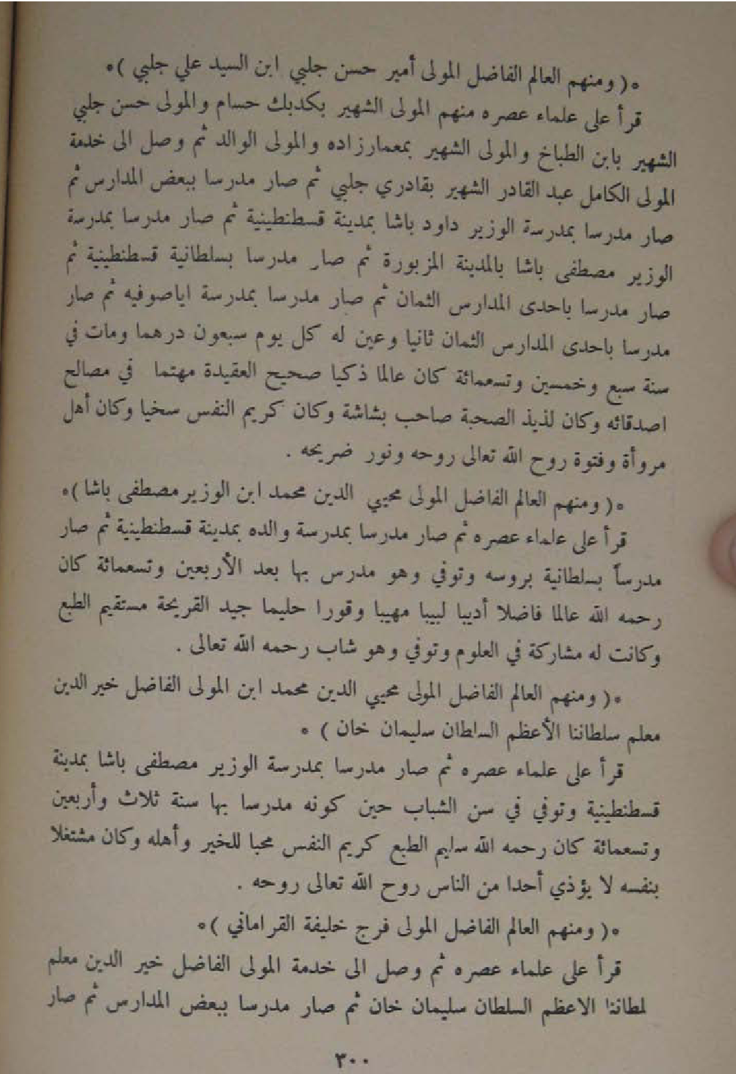 وَمِنْهُم الْعَالم الْفَاضِل الْمولى محيي الدّين مُحَمَّد ابْن الْمولى الْفَاضِل خير الدّين معلم سلطاننا الاعظم السُّلْطَان سُلَيْمَان خَان