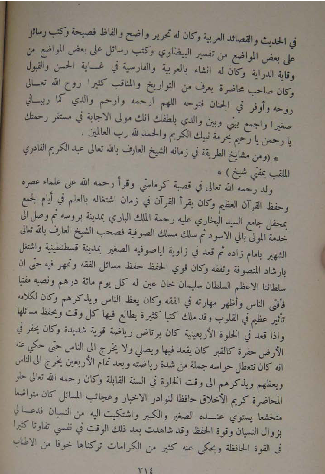 وَمن مَشَايِخ الطَّرِيقَة فِي زَمَانه الشَّيْخ الْعَارِف بِاللَّه تَعَالَى عبد الْكَرِيم القادري الملقب بمفتي شيخ