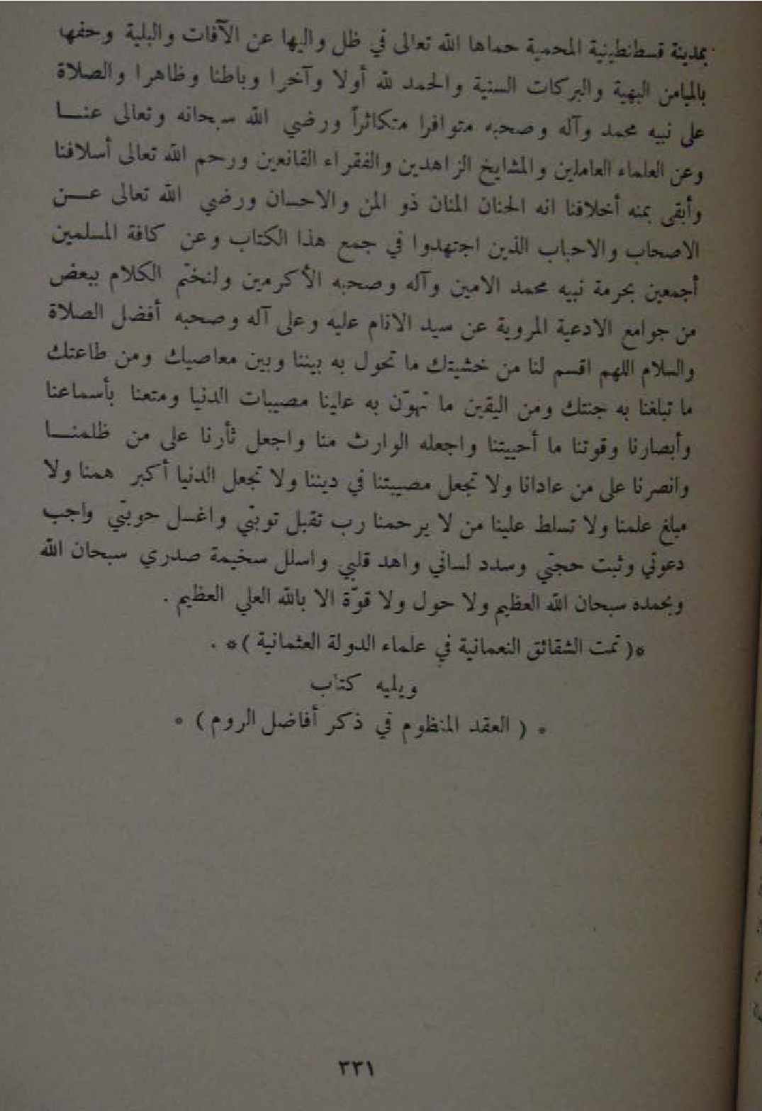 تمت الشقائق النعمانية فِي عُلَمَاء الدولة العثمانية ويليه كتاب