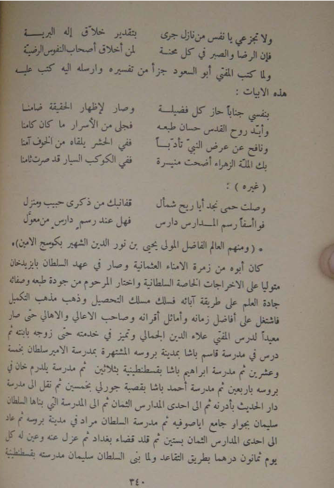 وَلما كتب الْمُفْتِي ابو السُّعُود جزأ من تَفْسِيره وارسله اليه كتب عَلَيْهِ هَذِه الابيات ... بنفسي جنابا حَاز كل فَضِيلَة وَصَارَ لاظهار الْحَقِيقَة ضَامِنا