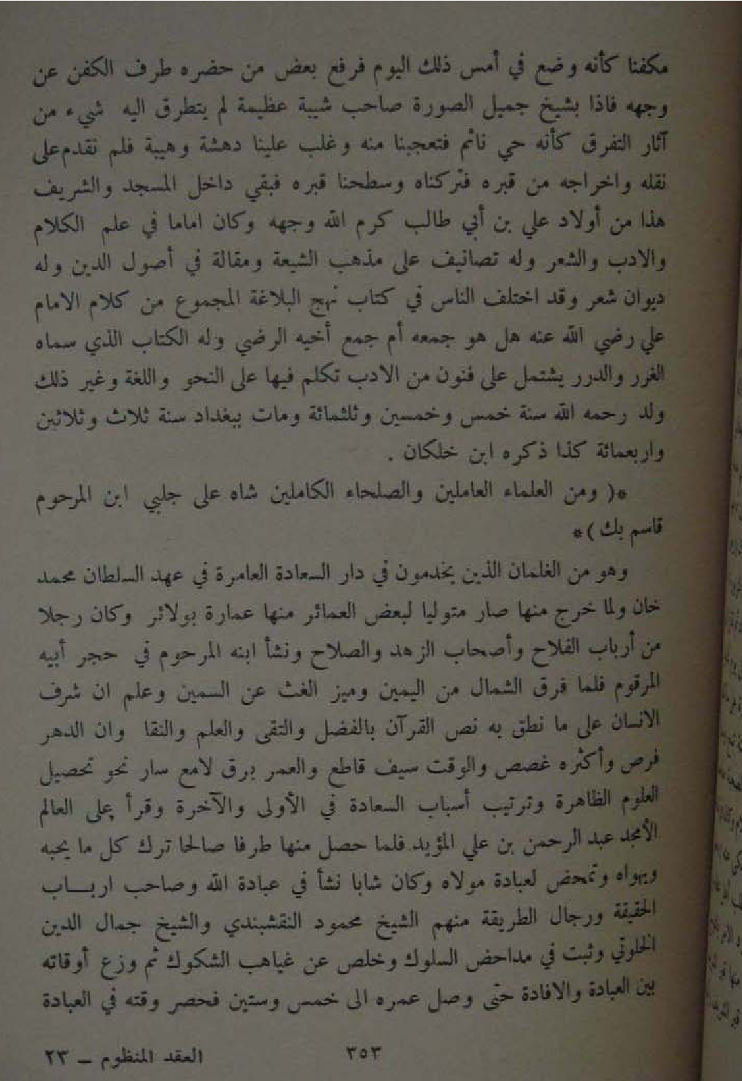وَمن الْعلمَاء العاملين والصلحاء الكاملين شاه عَليّ جلبي ابْن المرحوم قَاسم بك