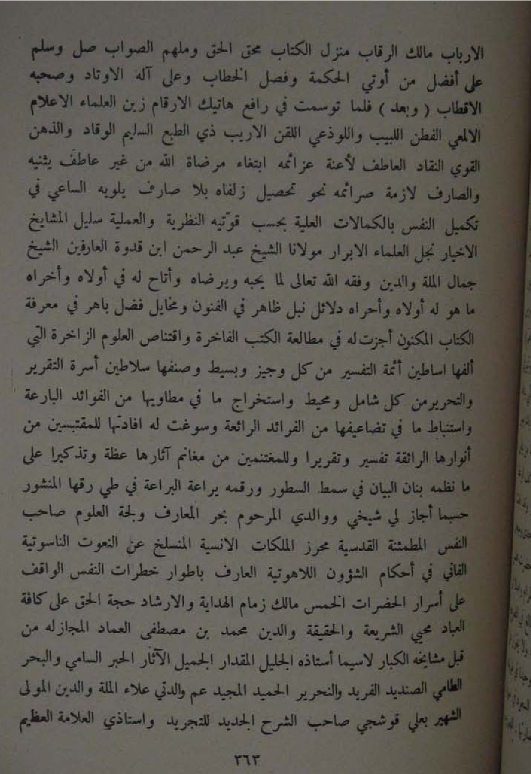 الأرباب مَالك الرّقاب منزل الْكتاب محق الْحق وملهم الصَّوَاب صل وَسلم على افضل من اوتي الْحِكْمَة وَفصل الْخطاب وعَلى آله الاوتاد وَصَحبه الاقطاب (وَبعد) فملا توسمت فِي رَافع هاتيك الارقام زين الْعلمَاء الاعلام الالمعي الفطن اللبيب واللوذعي اللقن الاريب ذِي الطَّبْع السَّلِيم الْوَقَّاد والذهن الْقوي النقاد العاطف لاعنة عَزَائِمه ابْتِغَاء مرضاة الله من غير عاطف يثنيه والصارف لَازِمَة صرائمه نَحْو تَحْصِيل زلفاه بِلَا صَارف يلويه السَّاعِي فِي تَكْمِيل النَّفس بالكمالات الْعلية بِحَسب قوتيه النظرية والعملية سليل الْمَشَايِخ الاخيار نجل الْعلمَاء الابرار مَوْلَانَا الشَّيْخ عبد الرحمن ابْن قدوة العارفين الشَّيْخ جمال الْملَّة وَالدّين وَفقه الله تَعَالَى لما يُحِبهُ ويرضاه واتاح لَهُ فِي اولاه واخراه مَا هُوَ لَهُ اولاه وأحراه دَلَائِل نبل ظَاهر فِي الْفُنُون ومخايل فضل باهر فِي معرفَة الْكتاب الْمكنون اجزت لَهُ فِي مطالعة الْكتب الفاخرة واقتناص الْعُلُوم الزاخرة الَّتِي الفها اساطين ائمة التَّفْسِير من كل وجيز وبسيط وصنفها سلاطين اسرة التَّقْرِير والتحرير من كل شَامِل ومحيط واستخراج مَا فِي مطاويها من الْفَوَائِد البارعة واستنباط مَا فِي تضاعيفها من الفرائد الرائعة وسوغت لَهُ افادتها للمقتبسين من انوارها الرائقة تَفْسِير وتقريرا وللمغتنمين من مَغَانِم آثارها عظة وتذكيرا على مَا نظمه بنان الْبَيَان فِي سمط السطور ورقمه يراعة البراعة فِي طي رقها المنشور حَسْبَمَا اجاز لي شَيْخي ووالدي المرحوم بَحر المعارف ولجة الْعُلُوم صَاحب النَّفس المطمئنة القدسية مُحرز الملكات الانسية المنسلخ عَن النعوت الناسوتية الفاني فِي احكام الشؤون اللاهوتية الْعَارِف باطوار خطرات النَّفس الْوَاقِف على اسرار الحضرات الْخمس مَالك زِمَام الْهِدَايَة والارشاد حجَّة الْحق على كَافَّة الْعباد محيي الشَّرِيعَة والحقيقة وَالدّين مُحَمَّد بن مصطفى الْعِمَاد الْمجَاز لَهُ من قبل مشايخه الْكِبَار لَا سِيمَا استاذه الْجَلِيل الْمِقْدَار الْجَمِيل الاثار الحبر السَّامِي وَالْبَحْر الطامي الصنديد الفريد والنحرير الحميد الْمجِيد عَم والدتي عَلَاء الْملَّة وَالدّين الْمولى الشهير بعلي قوشجي صَاحب الشَّرْح الْجَدِيد للتجريد واستاذي الْعَلامَة الْعَظِيم