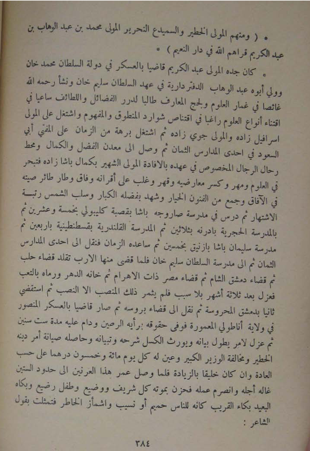 وَمِنْهُم الْمولى الخطير والسميدع النحرير الْمولى مُحَمَّد بن عبد الوهاب بن عبد الكريم قراهم الله فِي دَار النَّعيم