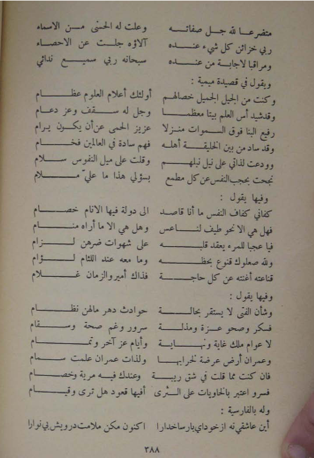 وفيهَا يَقُول ... كفاني كفاف النَّفس مَا انا قَاصد ... الى دولة فِيهَا الانام خصام