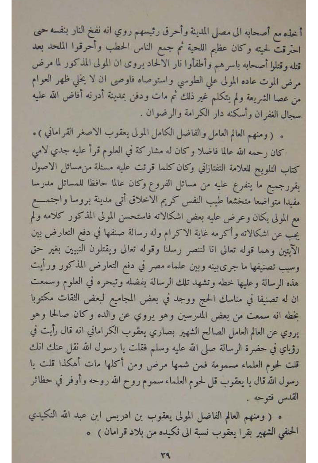 وَمِنْهُم الْعَالم الْعَامِل والفاضل الْكَامِل الْمولى يَعْقُوب الاصغر القراماني