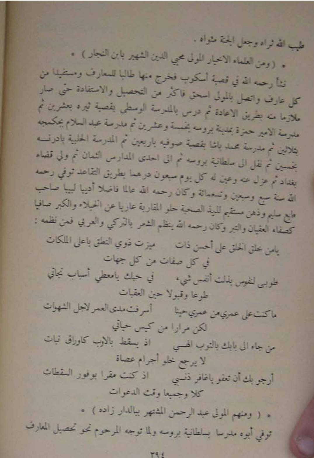 وَمن الْعلمَاء الاخيار الْمولى محيي الدّين الشهير بِابْن النجار