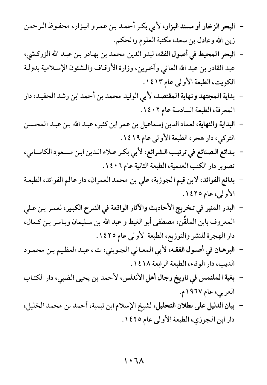 - بداية المجتهد ونهاية المقتصد، لأبي الوليد محمد بن أحمد ابن رشد الحفيد، دار المعرفة، الطبعة السادسة عام ١٤٠٢.