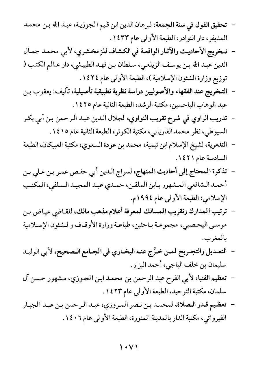 - تحقيق القول في سنة الجمعة، لبرهان الدين ابن قيم الجوزية، عبد الله بن محمد المديفر، دار النوادر، الطبعة الأولى عام ١٤٣٣.