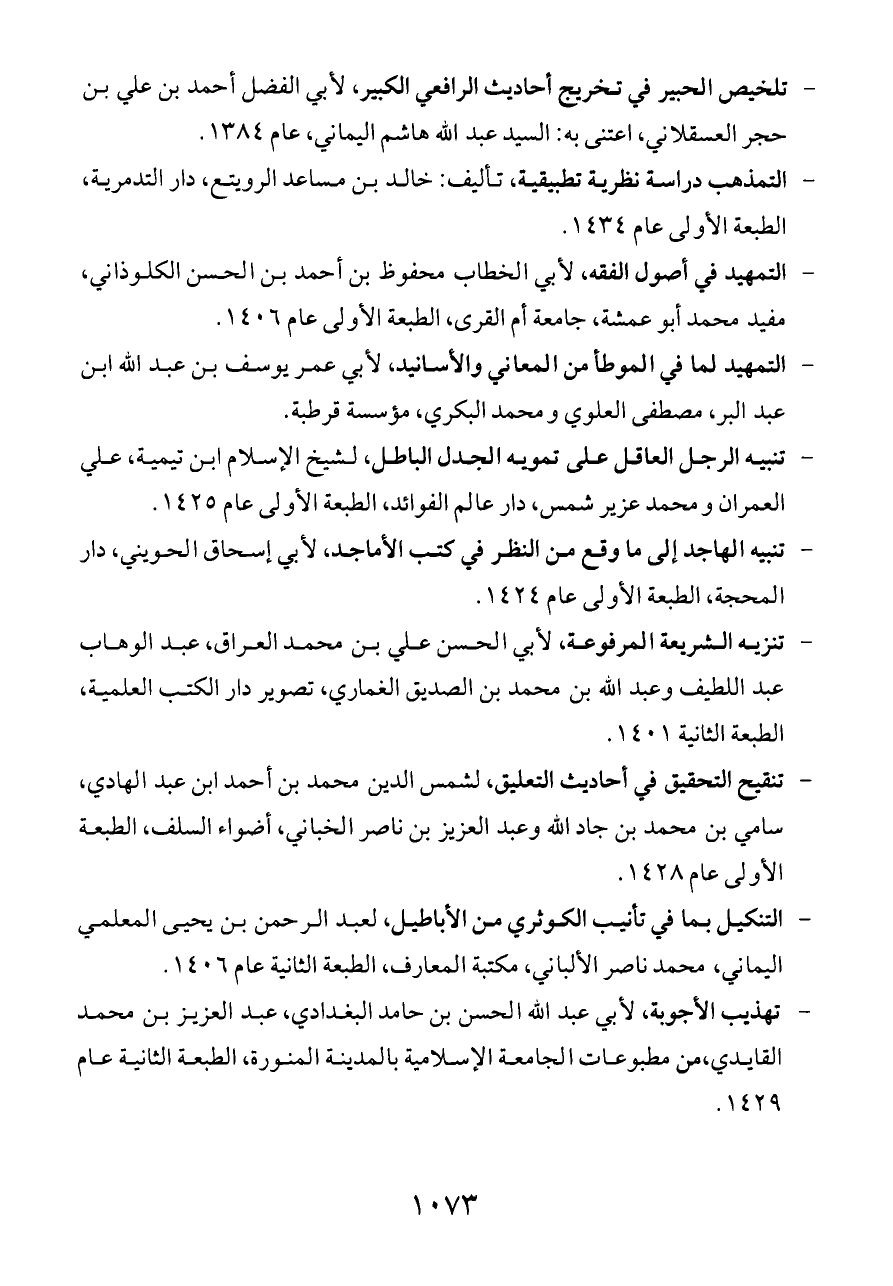 - تنقيح التحقيق في أحاديث التعليق، لشمس الدين محمد بن أحمد ابن عبد الهادي، سامي بن محمد بن جاد الله وعبد العزيز بن ناصر الخباني، أضواء السلف، الطبعة الأولى عام ١٤٢٨.