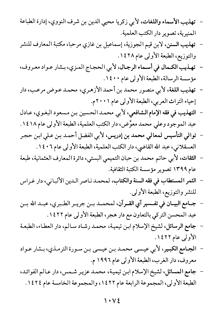 - تهذيب الكمال في أسماء الرجال، لأبي الحجاج المزي، بشار عواد معروف، مؤسسة الرسالة، الطبعة الأولى عام ١٤٠٠.