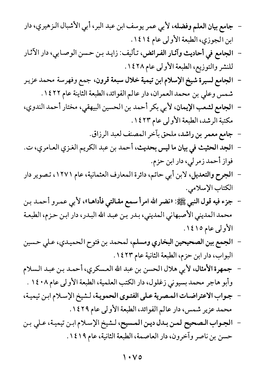 - جامع بيان العلم وفضله، لأبي عمر يوسف ابن عبد البر، أبي الأشبال الزهيري، دار ابن الجوزي، الطبعة الأولى عام ١٤١٤.