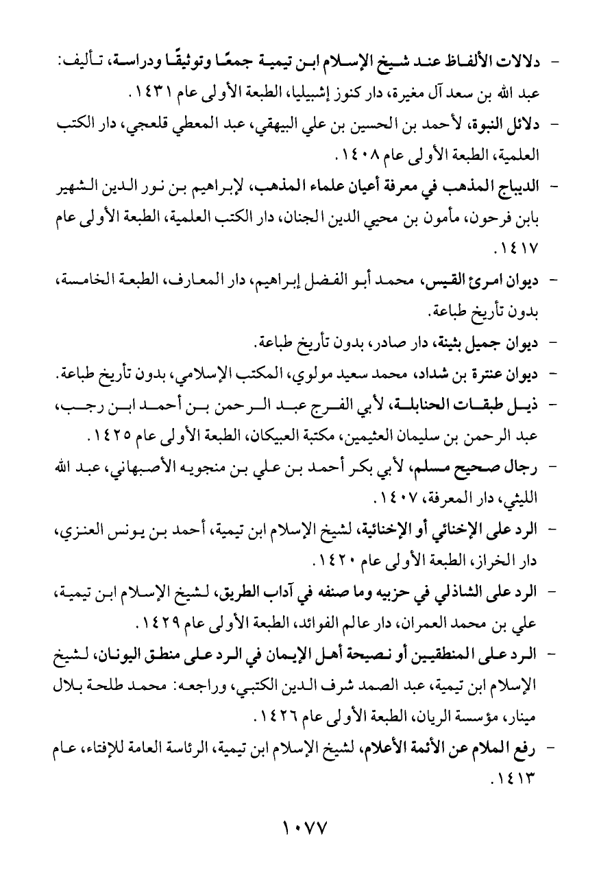 - ذيل طبقات الحنابلة، لأبي الفرج عبد الرحمن بن أحمد ابن رجب، عبد الرحمن بن سليمان العثيمين، مكتبة العبيكان، الطبعة الأولى عام ١٤٢٥.