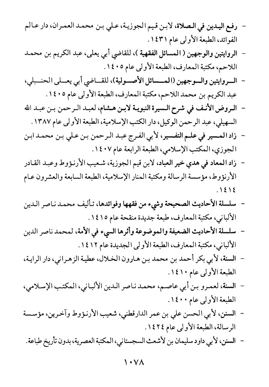 - الروايتين والوجهين (المسائل الفقهية)، للقاضي أبي يعلى، عبد الكريم بن محمد اللاحم، مكتبة المعارف، الطبعة الأولى عام ١٤٠٥.