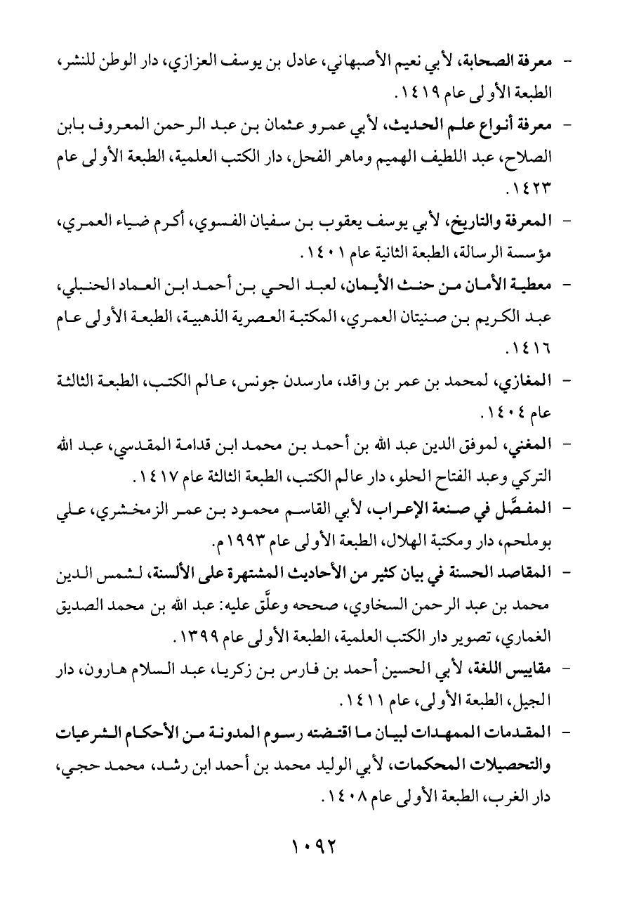 - معرفة أنواع علم الحديث، لأبي عمرو عثمان بن عبد الرحمن المعروف بابن الصلاح، عبد اللطيف الهميم وماهر الفحل، دار الكتب العلمية، الطبعة الأولى عام ١٤٢٣.