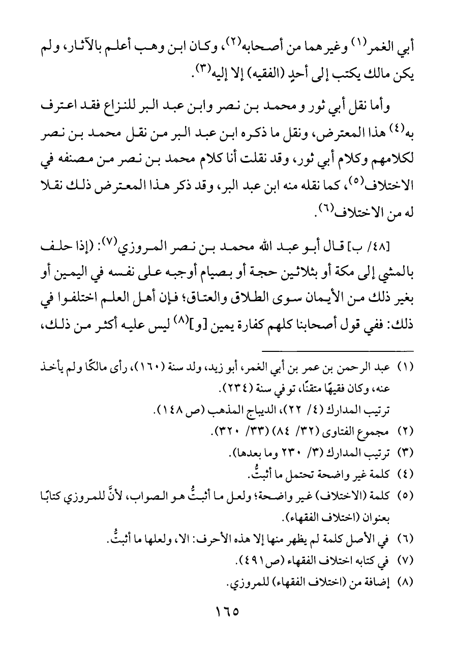 (¬٥) كلمة (الاختلاف) غير واضحة؛ ولعل ما أثبتُّ هو الصواب، لأنَّ للمروزي كتابًا بعنوان (اختلاف الفقهاء).