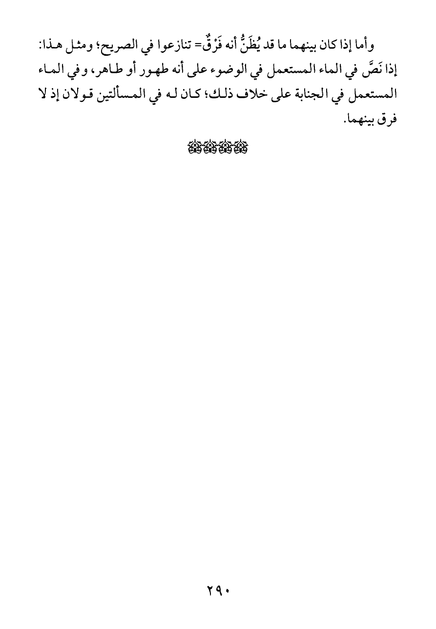 وأما إذا كان بينهما ما قد يُظَنُّ أنه فَرْقٌ= تنازعوا في الصريح؛ ومثل هذا: إذا نَصَّ في الماء المستعمل في الوضوء على أنه طهور أو طاهر، وفي الماء المستعمل في الجنابة على خلاف ذلك؛ كان له في المسألتين قولان إذ لا فرق بينهما.