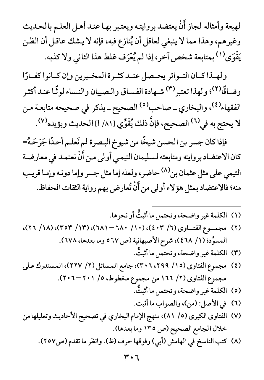 (¬٧) الفتاوى الكبرى (٥/ ٨١)، منهج الإمام البخاري في تصحيح الأحاديث وتعليلها من خلال الجامع الصحيح (ص ١٣٥ وما بعدها).