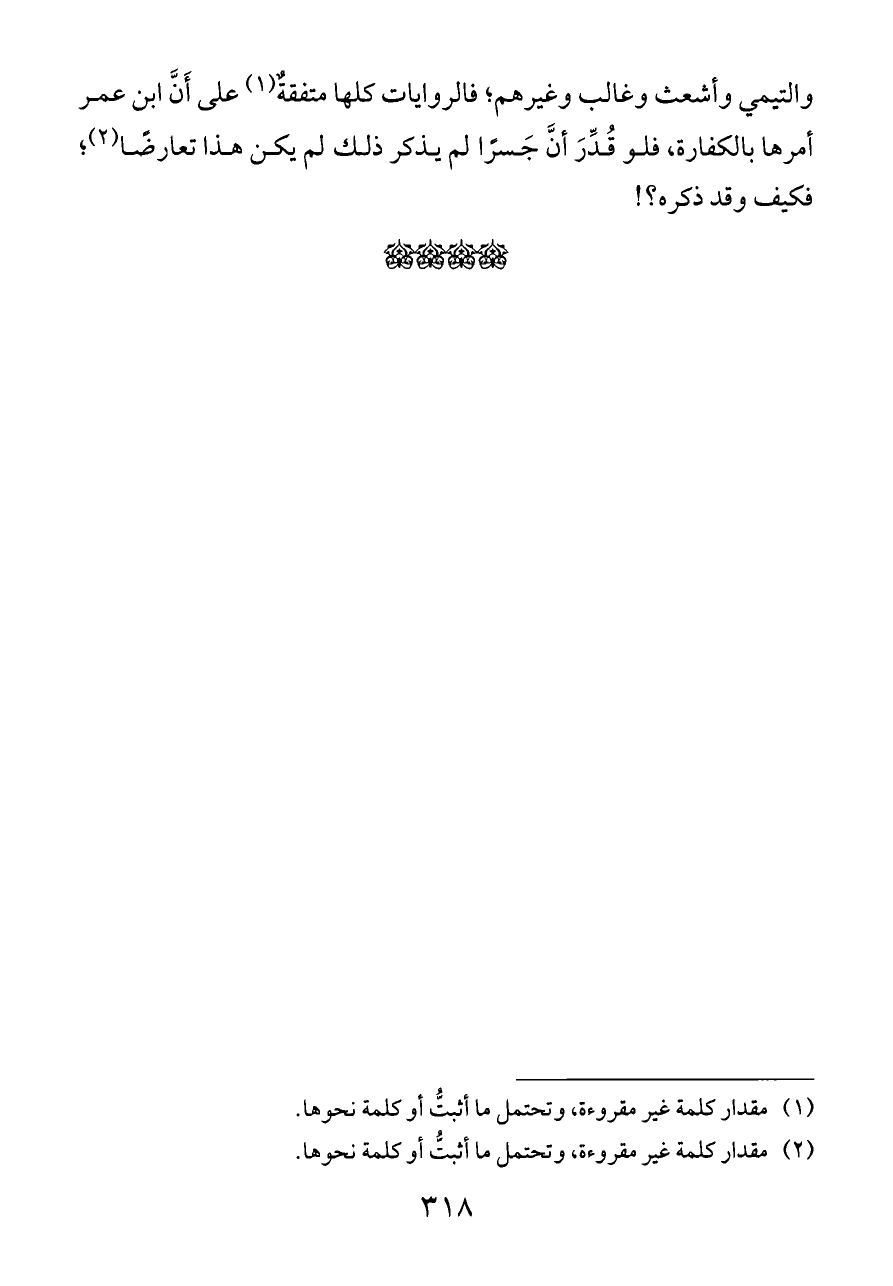 (¬٢) مقدار كلمة غير مقروءة، وتحتمل ما أثبتُّ أو كلمة نحوها.