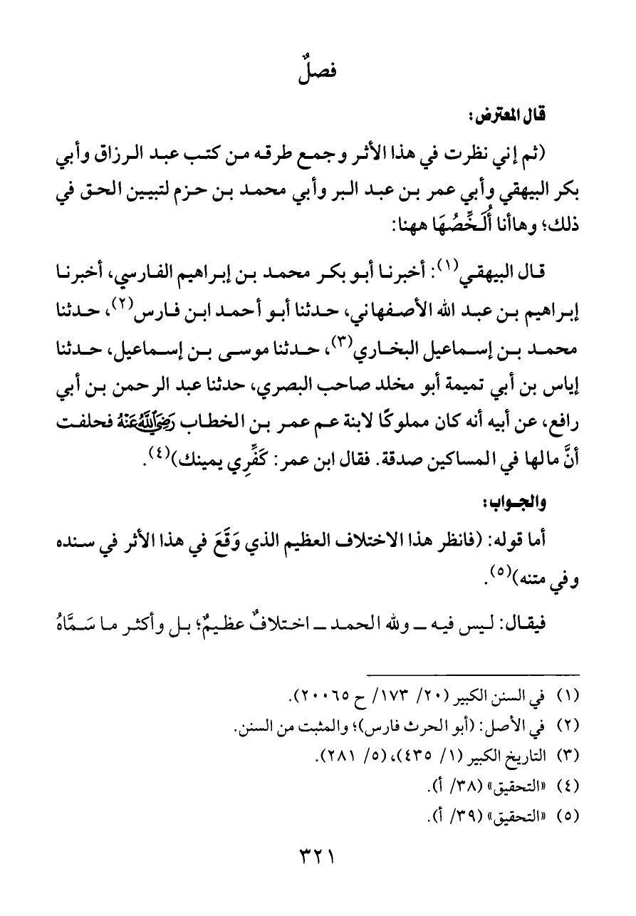 (ثم إني نظرت في هذا الأثر وجمع طرقه من كتب عبد الرزاق وأبي بكر البيهقي وأبي عمر بن عبد البر وأبي محمد بن حزم لتبيين الحق في ذلك؛ وهاأنا أُلَخِّصُهَا ههنا: