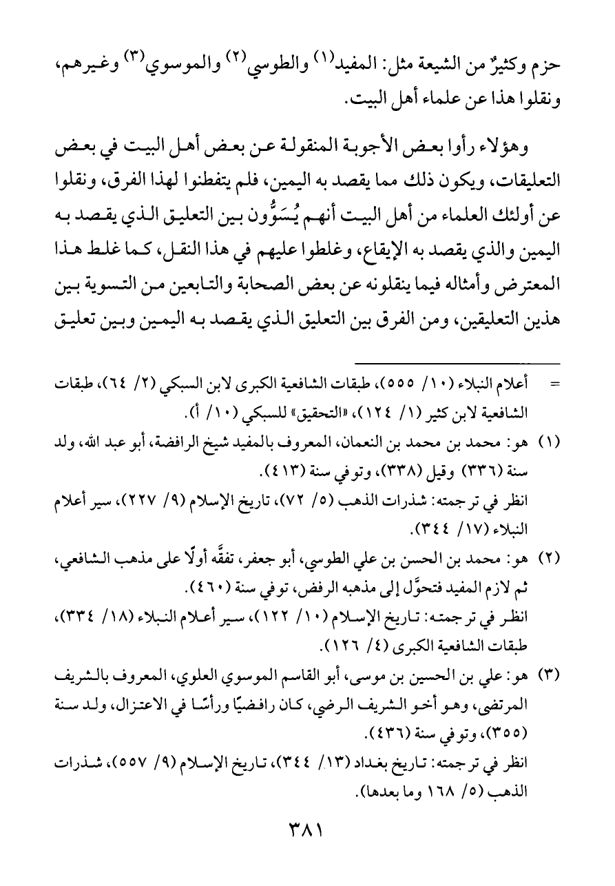 حزم وكثيرٌ من الشيعة مثل: المفيد (¬١) والطوسي (¬٢) والموسوي (¬٣) وغيرهم، ونقلوا هذا عن علماء أهل البيت.
