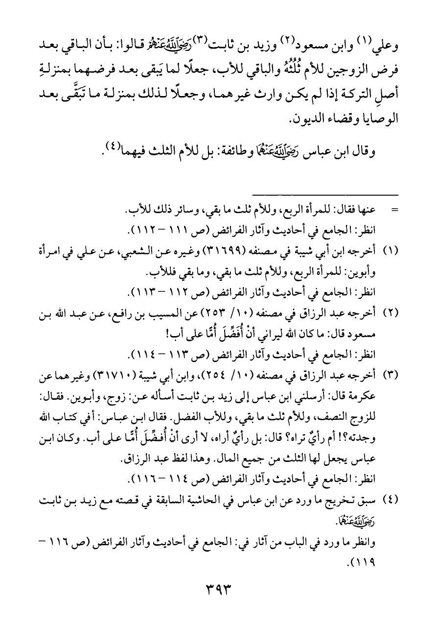 انظر: الجامع في أحاديث وآثار الفرائض (ص ١١٣ - ١١٤).