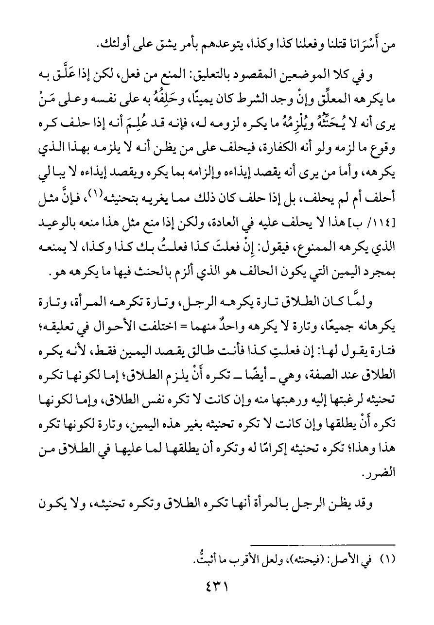 (¬١) في الأصل: (فيحنثه)، ولعل الأقرب ما أثبتُّ.