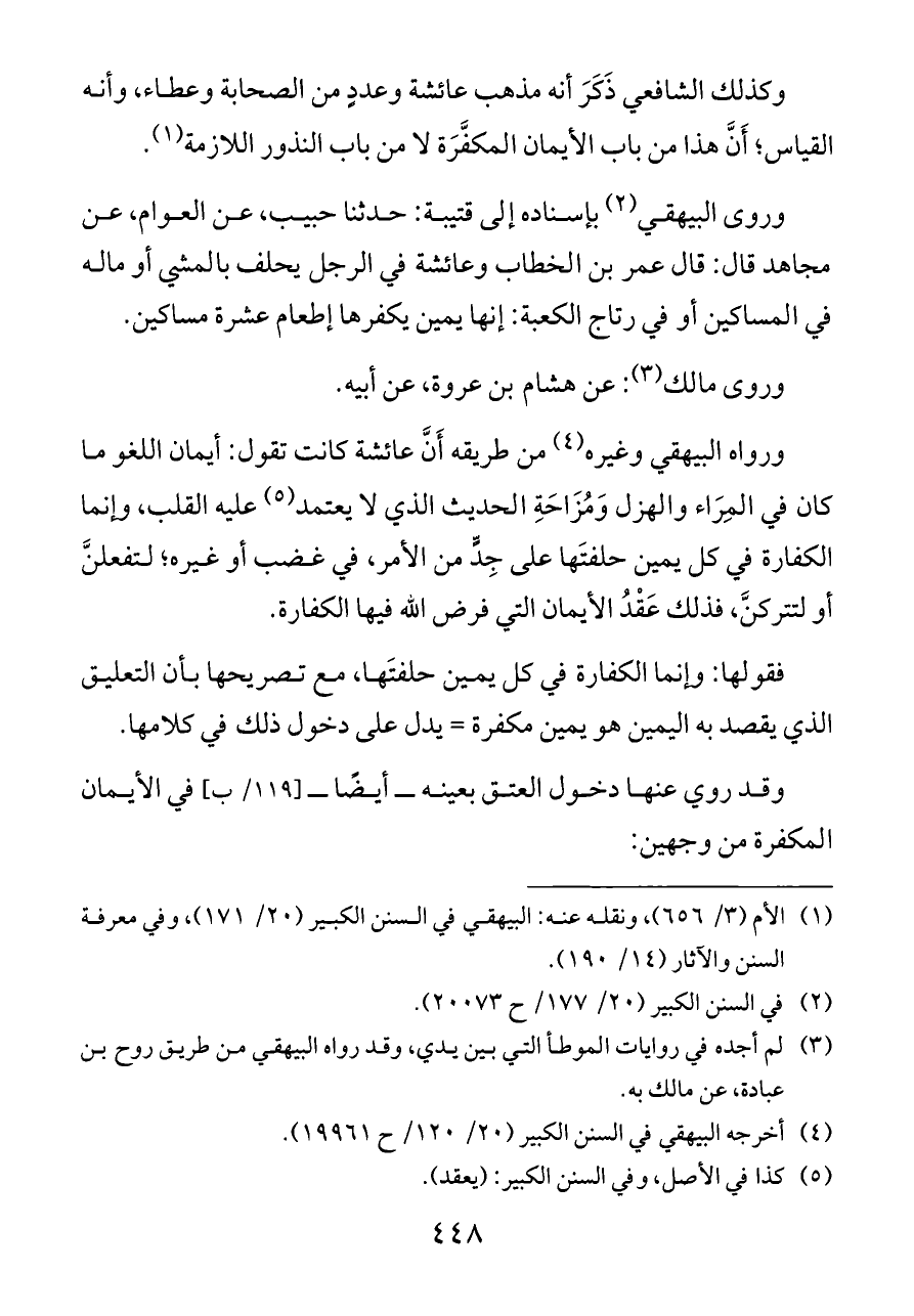 وكذلك الشافعي ذَكَرَ أنه مذهب عائشة وعددٍ من الصحابة وعطاء، وأنه القياس؛ أَنَّ هذا من باب الأيمان المكفَّرَة لا من باب النذور اللازمة (¬١).