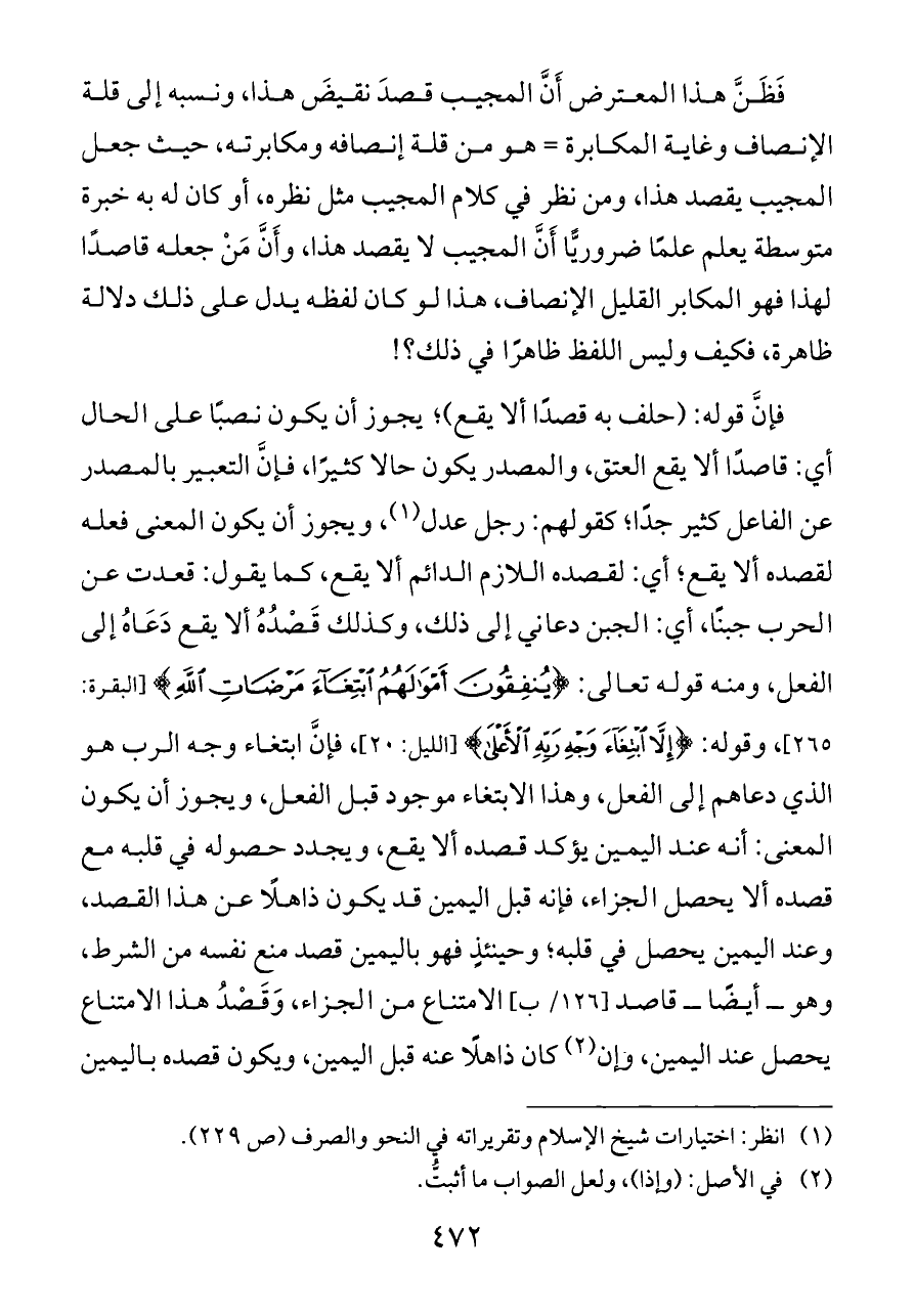 (¬١) انظر: اختيارات شيخ الإسلام وتقريراته في النحو والصرف (ص ٢٢٩).