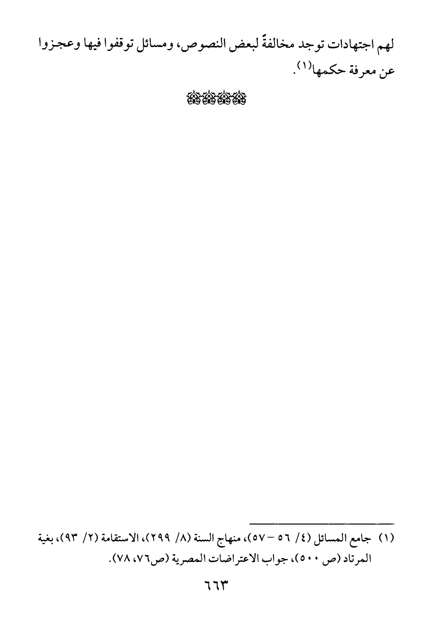 (¬١) جامع المسائل (٤/ ٥٦ - ٥٧)، منهاج السنة (٨/ ٢٩٩)، الاستقامة (٢/ ٩٣)، بغية المرتاد (ص ٥٠٠)، جواب الاعتراضات المصرية (ص ٧٦، ٧٨).