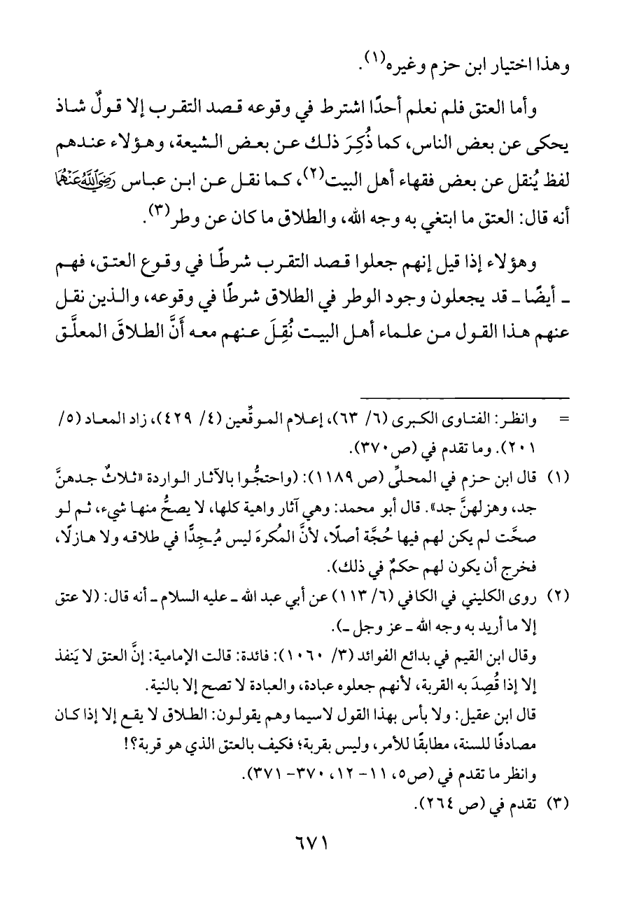 (¬٢) روى الكليني في الكافي (٦/ ١١٣) عن أبي عبد الله ــ عليه السلام ــ أنه قال: (لا عتق إلا ما أريد به وجه الله ــ عز وجل ــ).