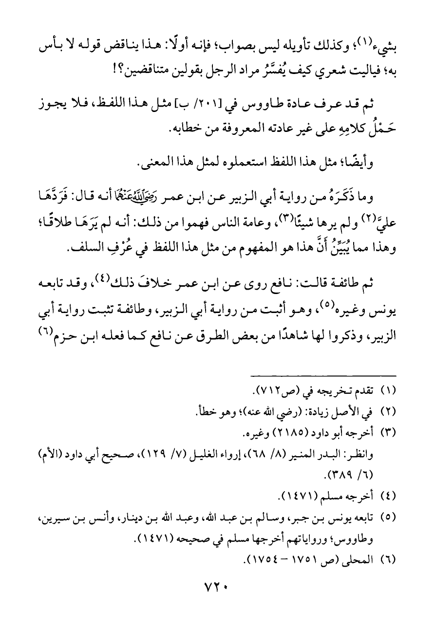 ثم قد عرف عادة طاووس في [٢٠١/ ب] مثل هذا اللفظ، فلا يجوز حَمْلُ كلامِهِ على غير عادته المعروفة من خطابه.