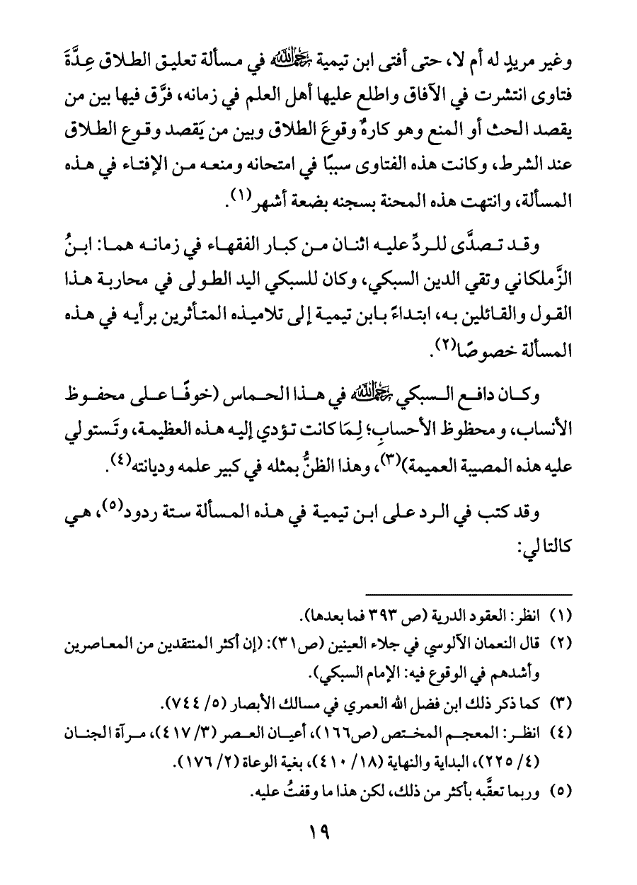 (¬٢) قال النعمان الآلوسي في جلاء العينين (ص ٣١): (إن أكثر المنتقدين من المعاصرين وأشدهم في الوقوع فيه: الإمام السبكي).