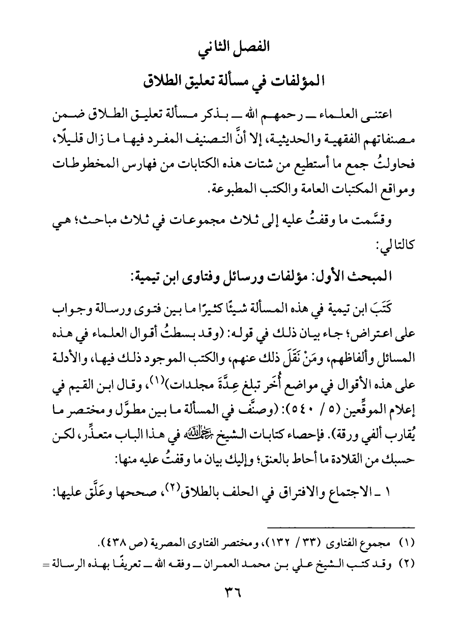 (¬٢) وقد كتب الشيخ علي بن محمد العمران ــ وفقه الله ــ تعريفًا بهذه الرسالة وبمخطوطتها النفيسة، نَشَرَهُ في مجلة الدارة (١/ ٣٧/٥٧)، وفي مواقع الشبكة المعلوماتية بعنوان: التعريف بمخطوطة نفيسة لرسالة (الاجتماع والافتراق في مسائل الأيمان والطلاق) لشيخ الإسلام ابن تيمية، ثم طَبَعَهُ ضمن كتابه (بحوث ومقالات في العلم والتراث) نشر دار الوعي (ص ١٧ - ٣٩).