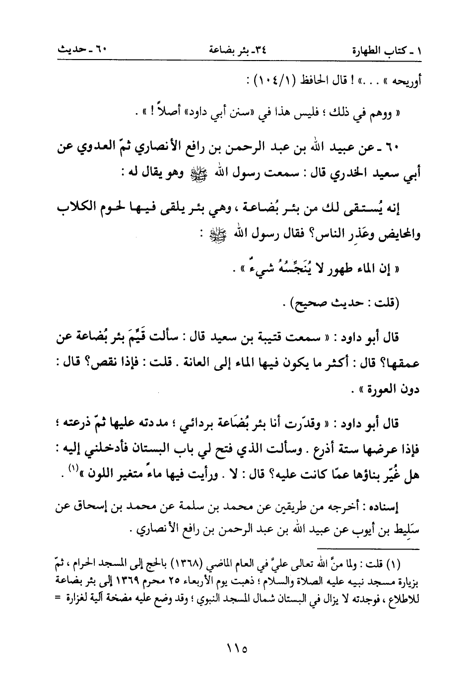 قال أبو داود: " سمعت قتيبة بن سعيد قال: سالت قَيمَ بئر بُضاعة عن