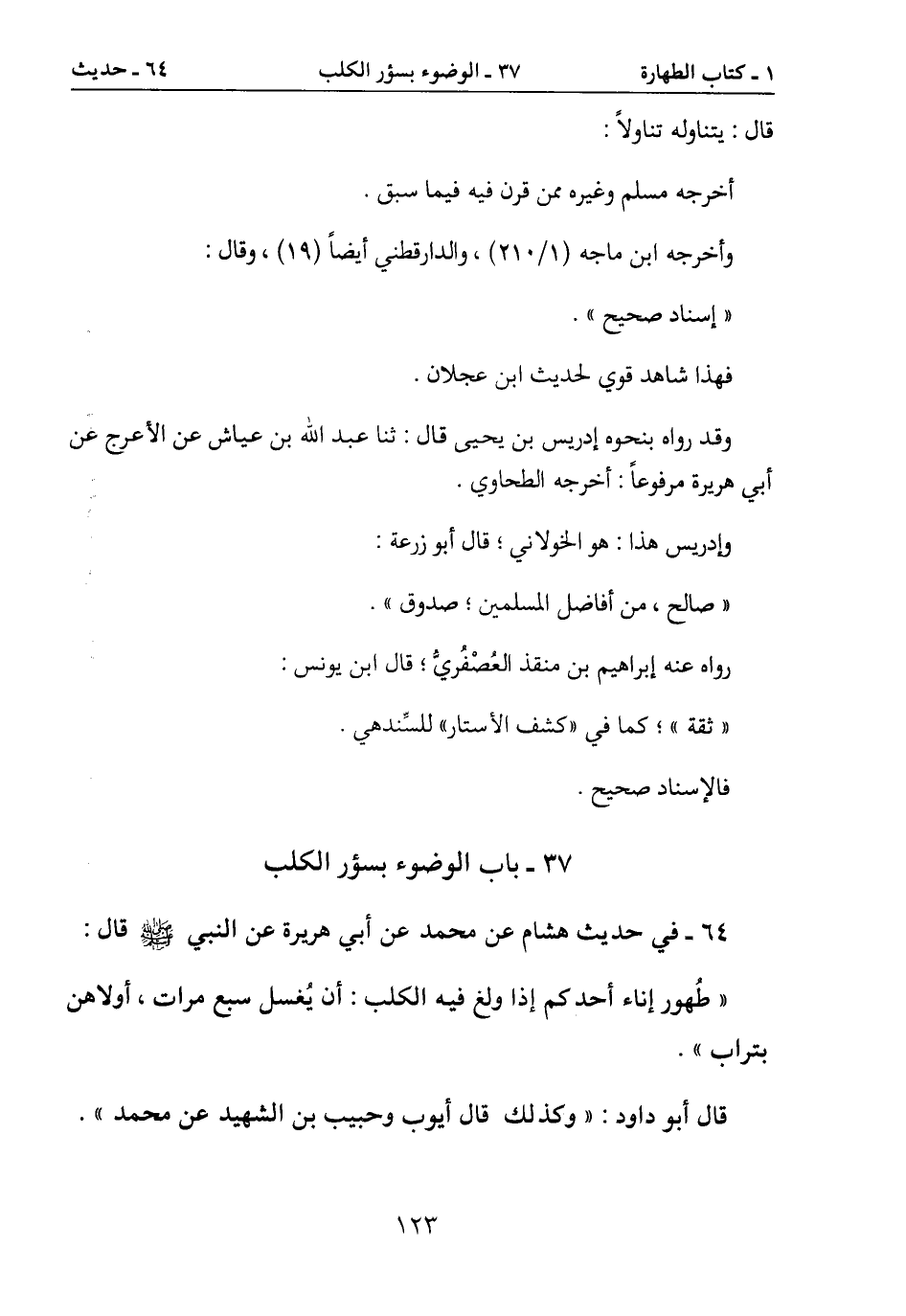 37- باب الوضوء بسؤر الكلب