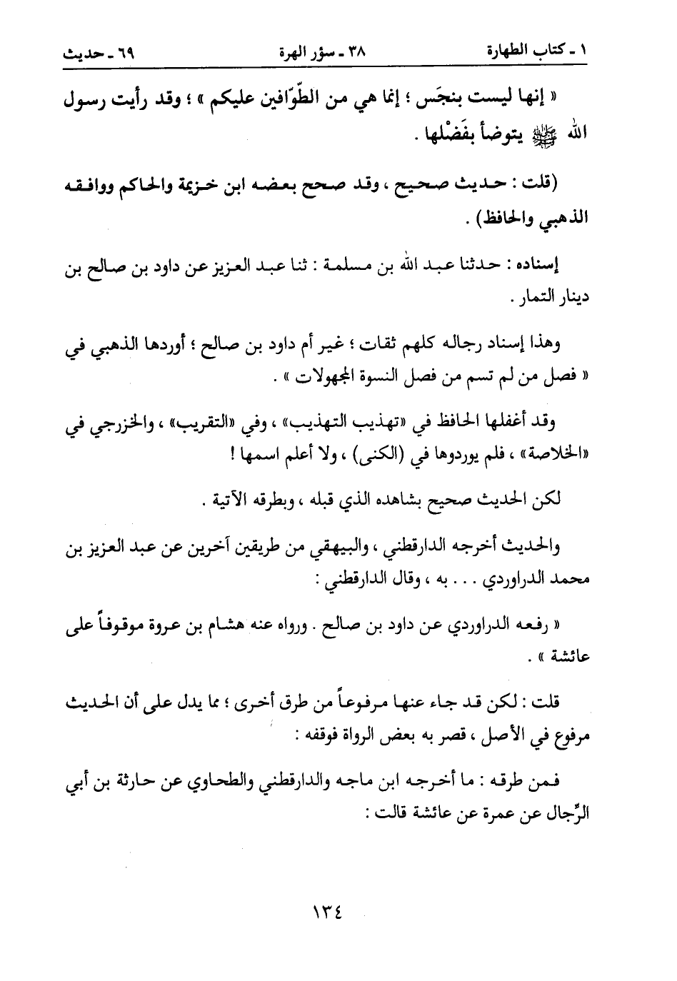 " إنها ليست بنجَس؛ إنما هي من الطّوّافين عليكم "؛ وقد رأيت رسول