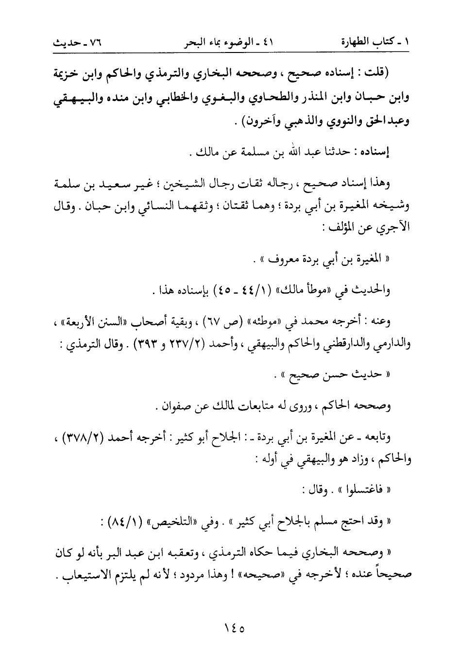 " وصححه البخاري فيما حكاه الترمذي، وتعقبه ابن عبد البر بأنه لو كان
