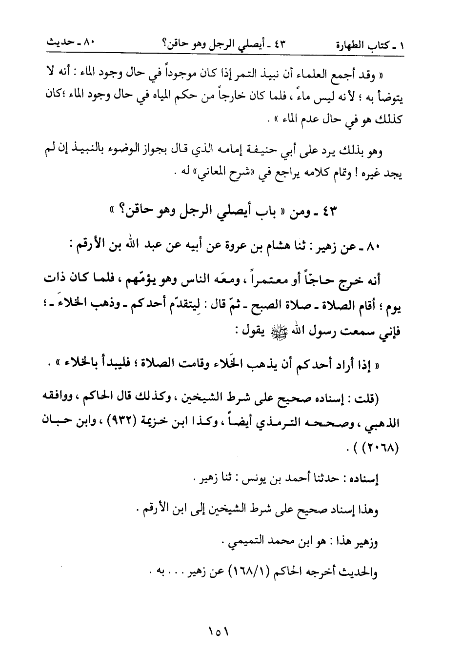 43- ومن " باب أيصلي الرجل وهو حاقن؟ "