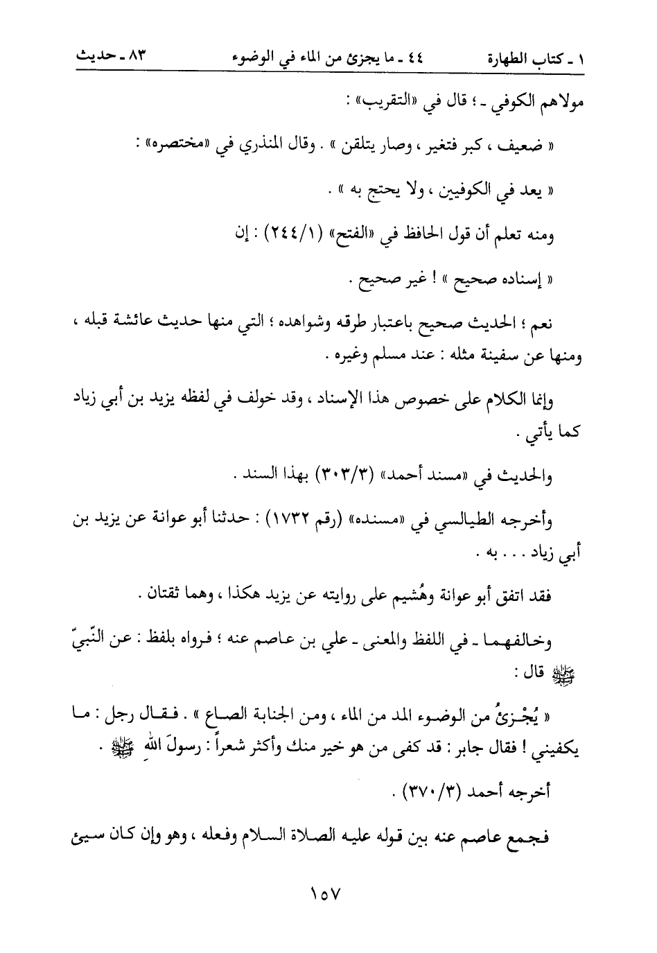 فجمع عاصم عنه بين قوله عليه الصلاة السلام وفعله، وهو وإن كان سيئ