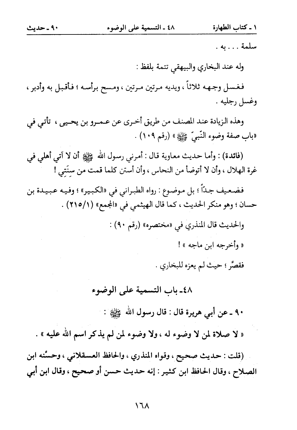 " لا صلاة لمن لا وضوء له، ولا وضوء لمن لم يذكر اسم الله عليه ".