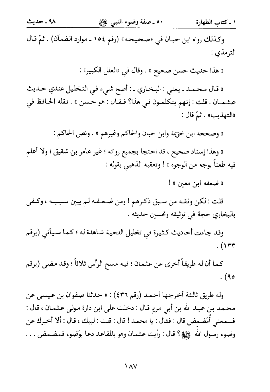 عثمان. قلت: إنهم يتكلمون في هذا؟ فقال: هو حسن ". نقله الحافظ في