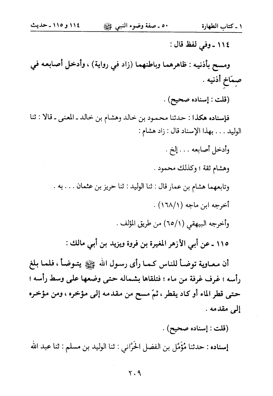 أن معاوية توضأ للناس كما رأى رسول الله صَلَّى اللَّهُ عَلَيْهِ وَسَلَّمَ يتوضأ، فلما بلغ