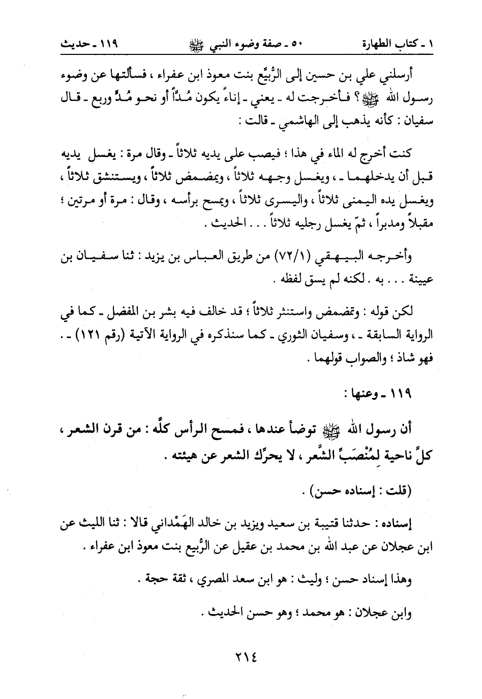 أرسلني علي بن حسين إلى الربيع بنت معوذ ابن عفراء، فساءلتها عن وضوء