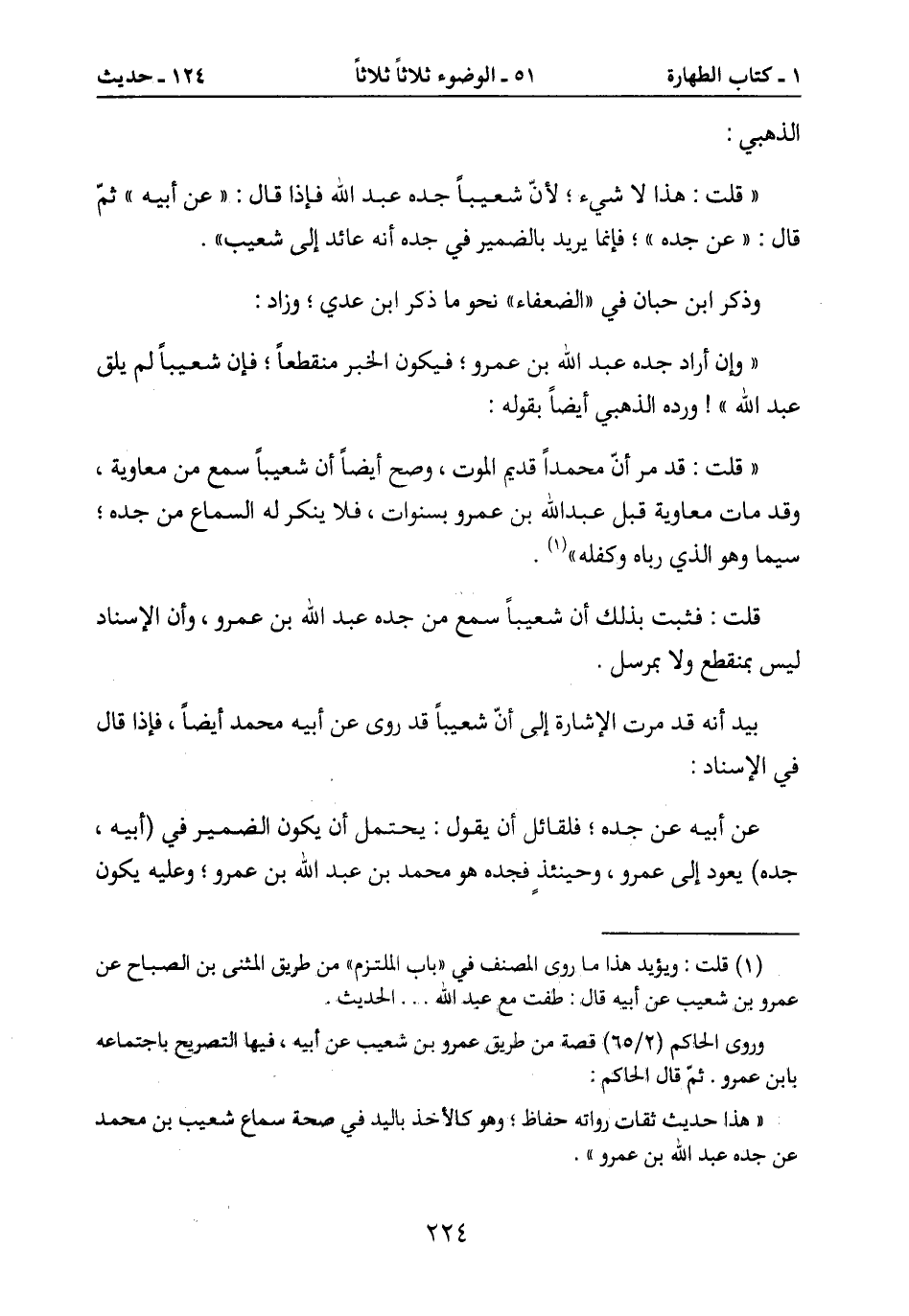 " قلت: هذا لا شيء؛ لأنّ شعيبأ جده عبد الله فإذا قال: " عن أبيه " ثمّ
