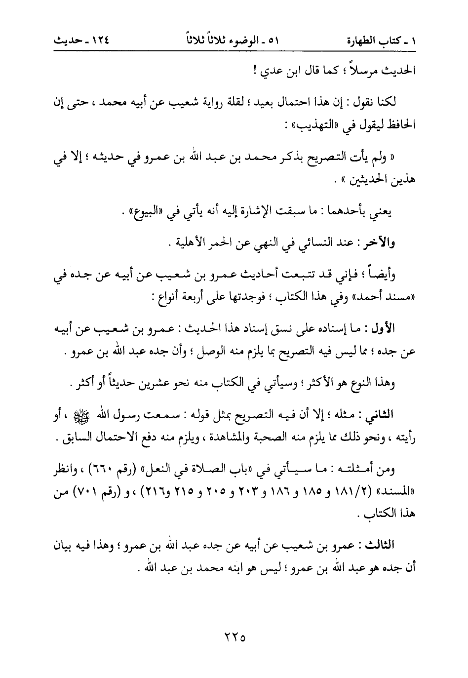 وأيضا؛ فإني قد تتبعت أحاديث عمرو بن شعيب عن أبيه عن جده في