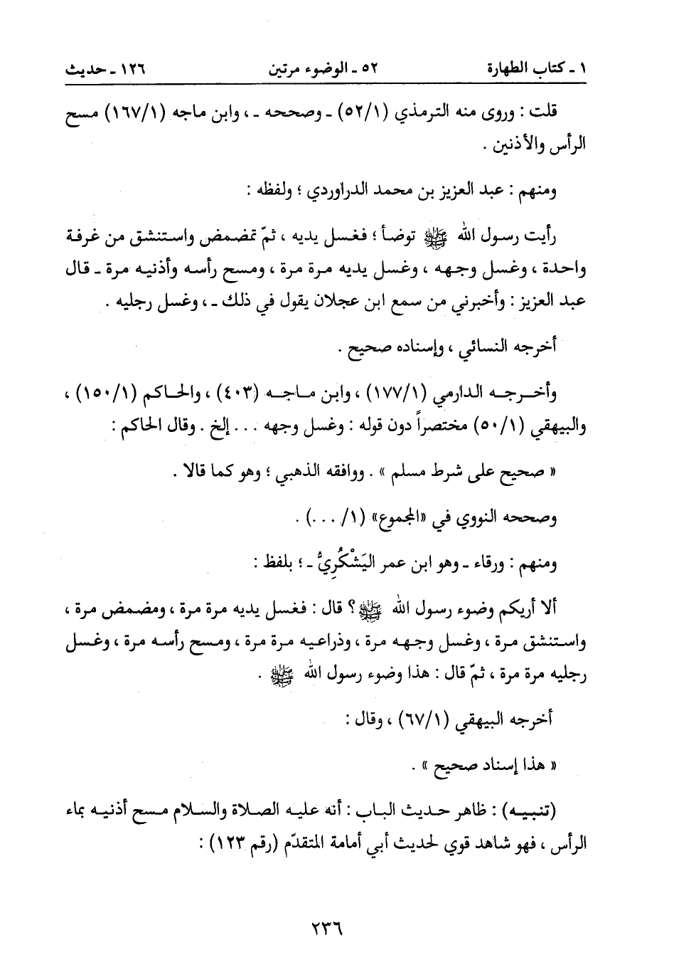 الرأس، فهو شاهد قوي لحديث أبي أمامة المتقدّم (رقم 123) :
