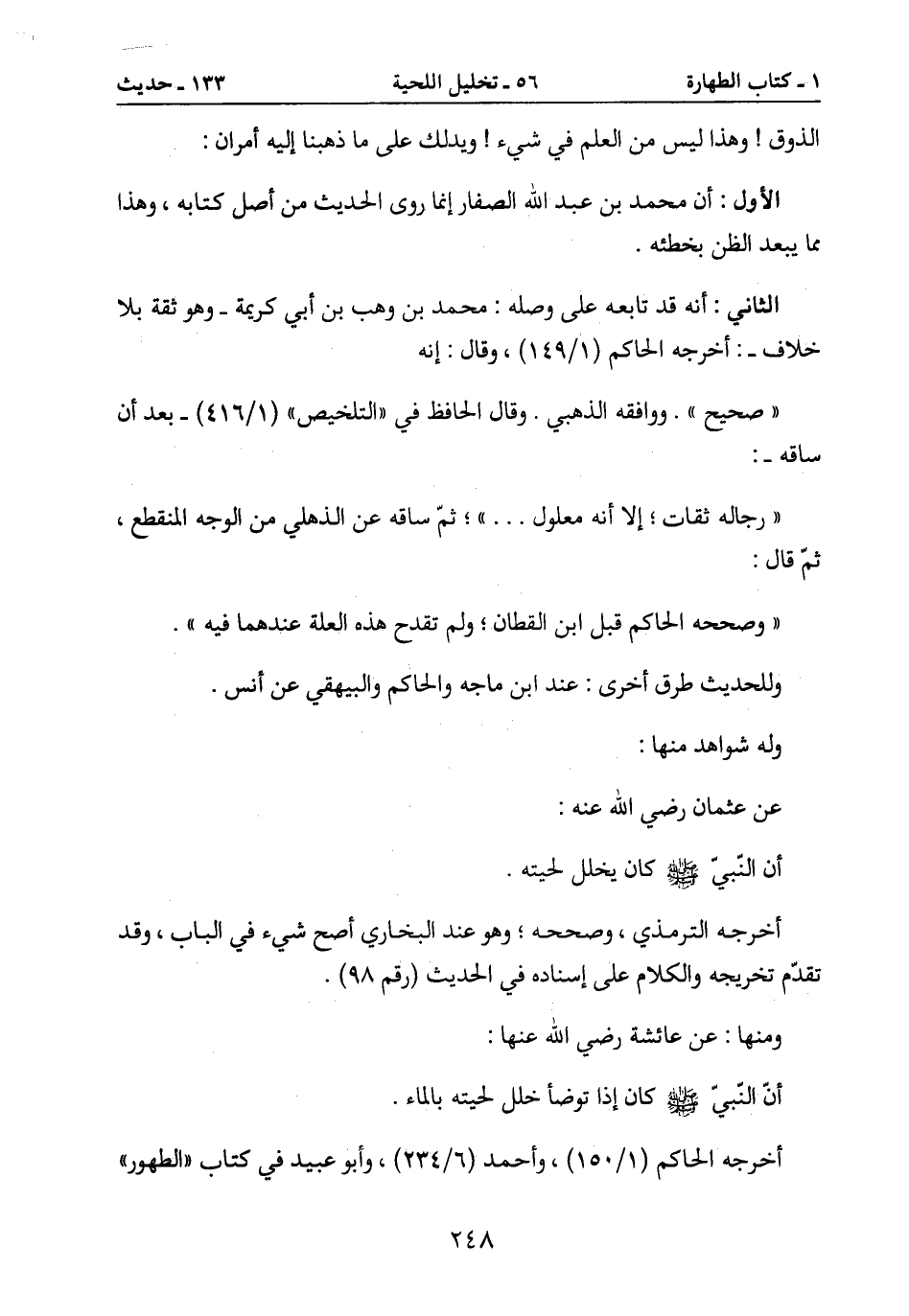 أن النّبيّ صَلَّى اللَّهُ عَلَيْهِ وَسَلَّمَ كان يخلل لحيته.