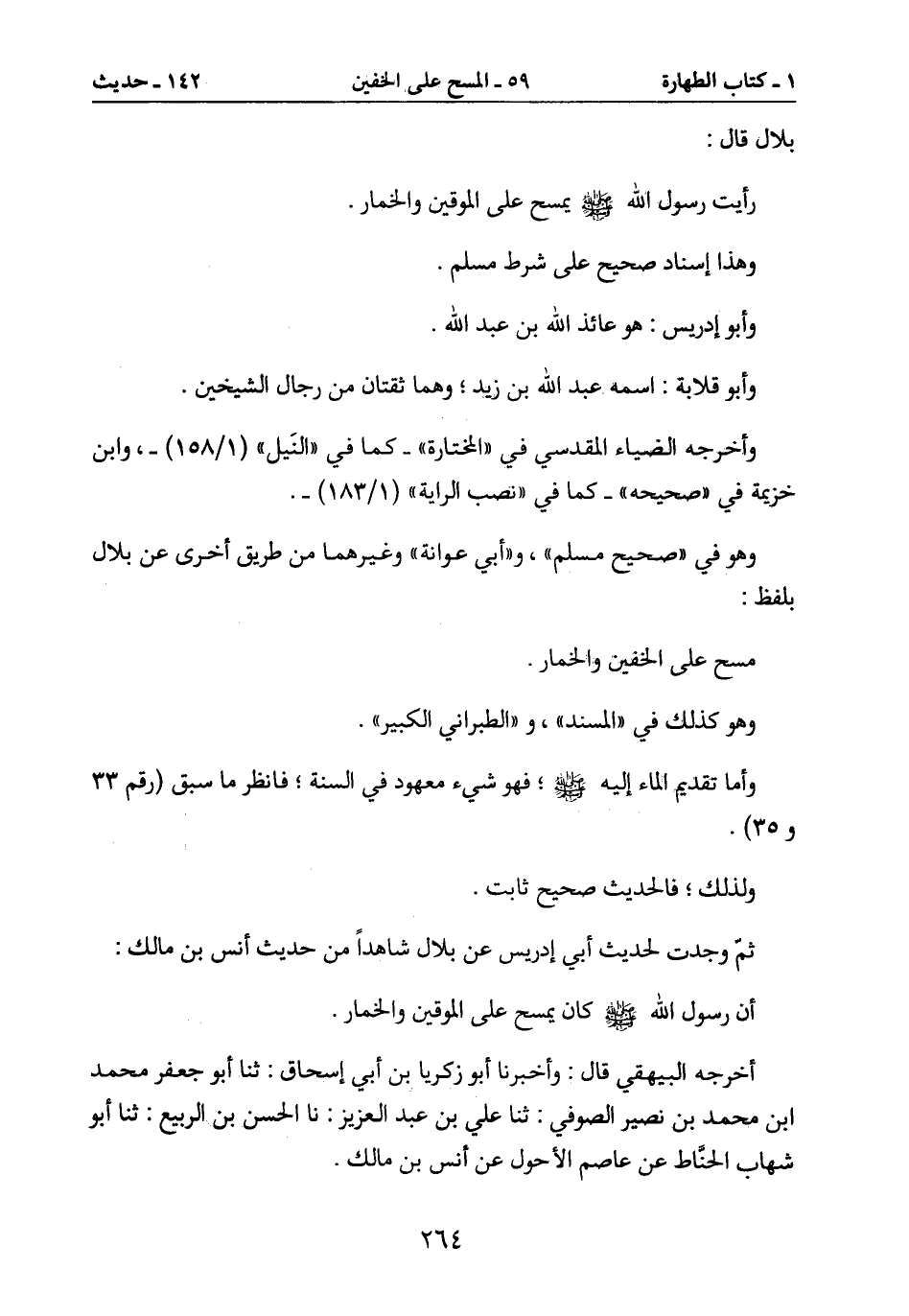 أن رسول الله صَلَّى اللَّهُ عَلَيْهِ وَسَلَّمَ كان يمسح على الموقين والخمار.