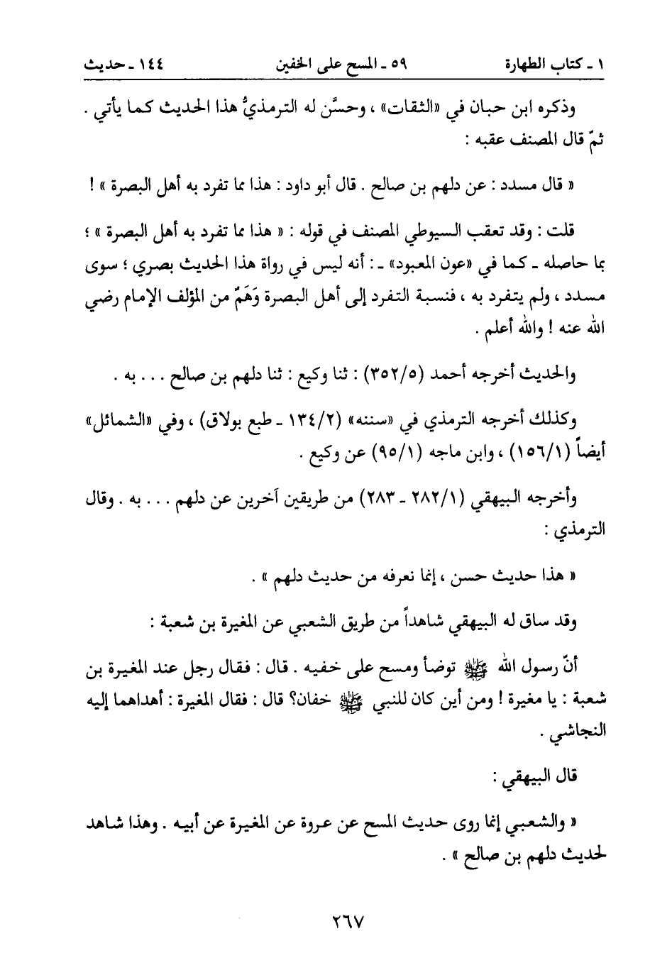 شعبة: يا مغيرة! ومن أين كان للنبي صَلَّى اللَّهُ عَلَيْهِ وَسَلَّمَ خفان؟ قال: فقال المغيرة: أهداهما إليه