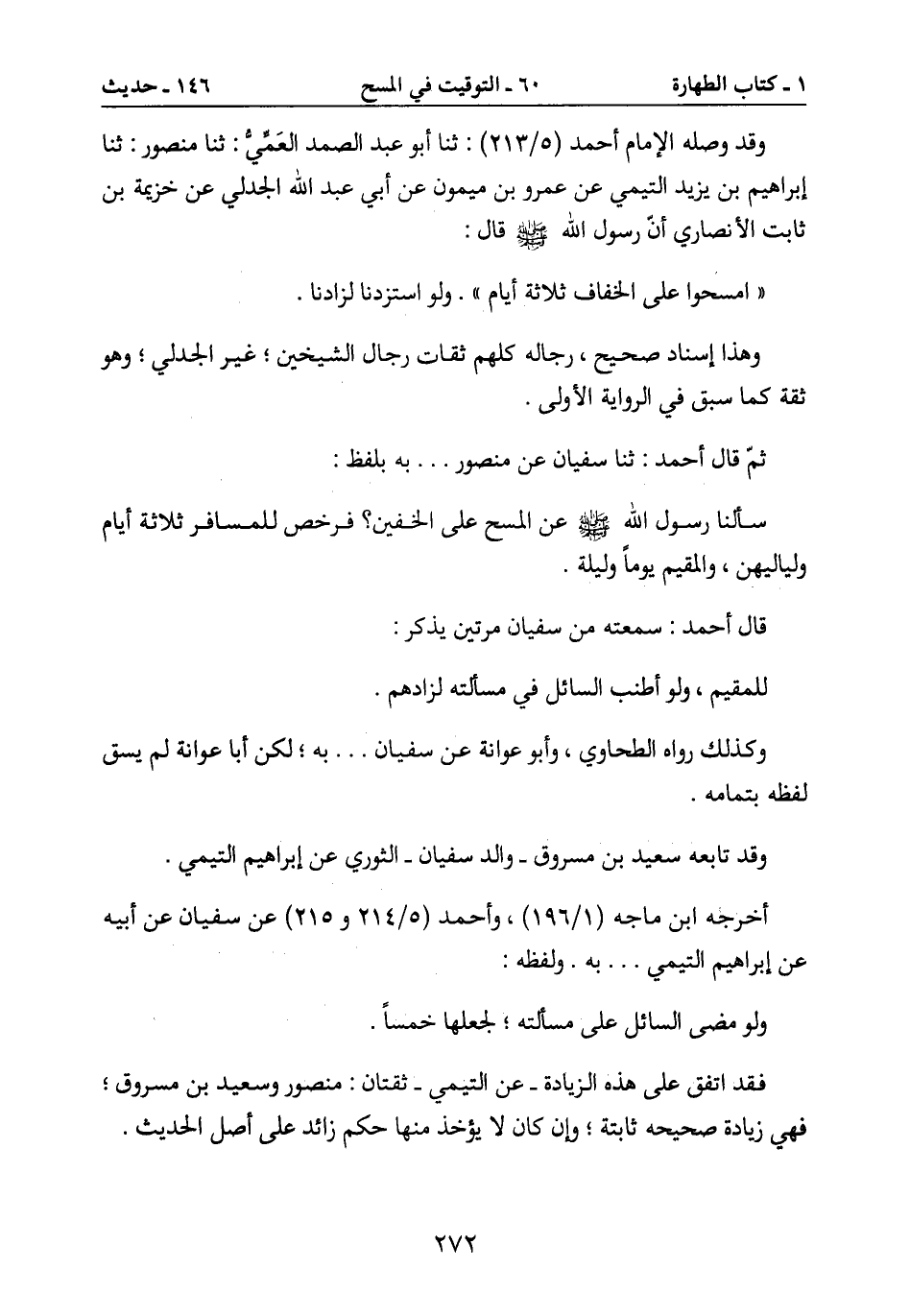 " امسحوا على الخفاف ثلاثة أيام ". ولو استزدنا لزادنا.